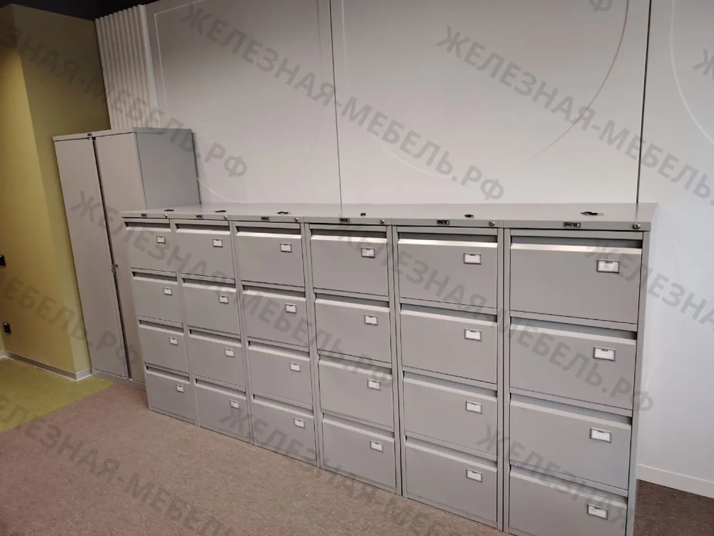 Шкафы, как всегда, супер. Можно подписать, где что лежит. Мы давно работаем с Железной мебелью, почти всегда заказываем оптом, менеджер дает отличную дополнительную скидку! Рядом стоит Шкаф ПРАКТИК М-18, у нас их тоже есть несколько, большие папки туда отлично вмещаются) Очень рекомендую!