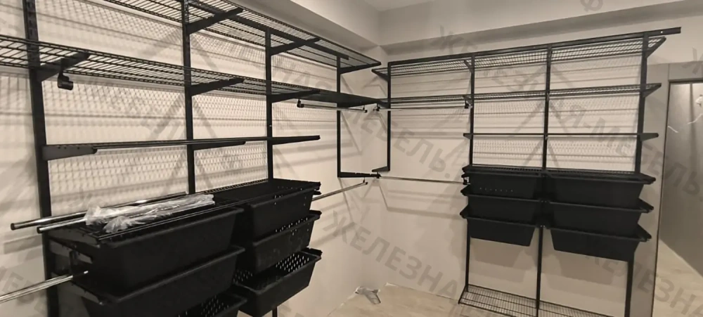 Гардеробная система Титан-GS-450 комплект №2 (цвет чёрный) отлично подходит для установки в квартире, частном доме, мастерской, гараже, офисе, подсобном помещении и многих других местах. Универсальные крепления позволяют менять элементы местами и регулировать все уровни хранения по высоте. Так вы сможете максимально точно подстроить гардеробную систему Титан-GS под ваши задачи.